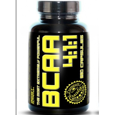 BCAA 4:1:1 - Best Nutrition BCAA 4:1:1 obsahuje aminokyseliny BCAA v pomere 4:1:1 vo forme kapsúl. Kapsuly sú veľmi ľahko stráviteľné. Tento pomer zapríčiňuje ešte väčší rast...